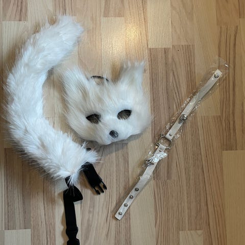 Med borrelås i halsen, grønne ører og liten dusk bak.