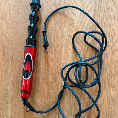 Enkel krølltang som går fra 120 til 200 grader. Funker med klemmen og funker fint til å bruke uten klemmen også. Klemmen kan dog ikke tas av.