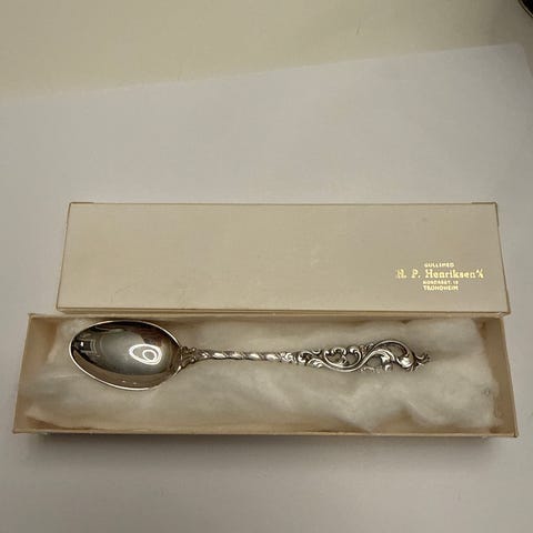 Kan sendes eller hentes etter avtale. Pris kan diskuteres ved rask handel. Se gjerne mine andre annonser – har flere sølvskjeer og serveringsdeler til salgs.