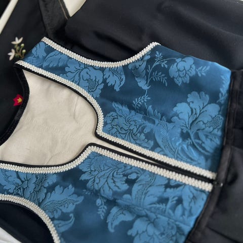 Jeg selger min Rogalandsbunad med Frafjord mønster. Den er mørkeblå med beige vest. Den ble laget i 2003, men har bare vært brukt noen ganger de første årene. Ellers dessverre vært hengende i skapet siden det. Stoffet ble kjøpt på Nordaker, og sydd av ei syerske på Vikeså.
