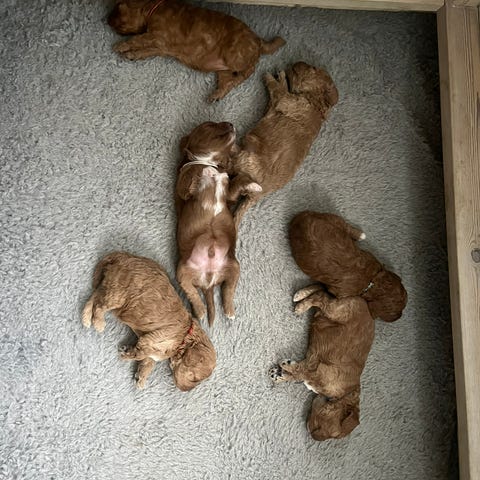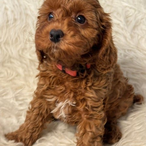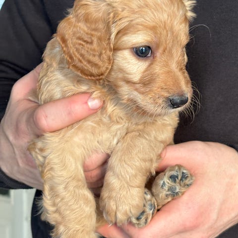 Vi har to ledige cockapoo F1, hannvalper med fargen golden rød, fra et kull på 7 friske og fine valper! Mor er engelsk cocker spaniel, fargen rød, og far er en liten mellompuddel, golden i fargen. Mor og far har gjennomgått helseundersøkelser som HD/AD rtg, øyelysing og kontroll for patellasykdommer. Foreldrene er glade hunder, med et meget godt gemytt, og valpene sosialiseres med både hunder og mennesker! Valpene ble født 17. desember - 25, og er leveringsklare i slutten av februar. Dette er noen skikkelige sjarmtroll som elsker kos og oppmerksomhet ❤️ Valpene leveres med helseattest, vaksinert og chippet, samt en liten utstyrspakke.