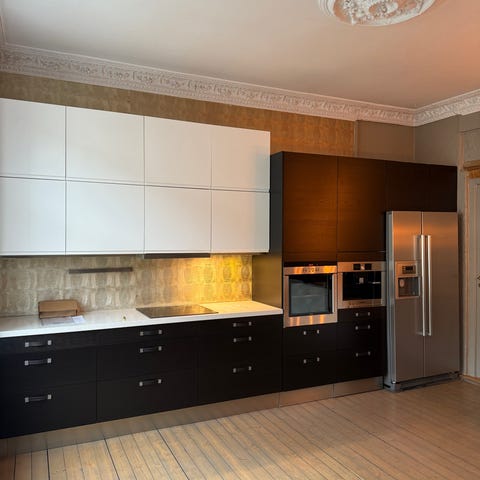Kjøkken gis bort i brukt tilstand. Kjøleskap, oppvaskmaskin og ovn inkludert.