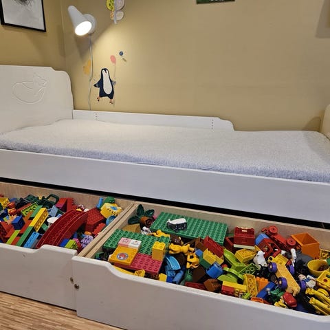 Tøff brannbilseng med rom til kosebamser og diverse.