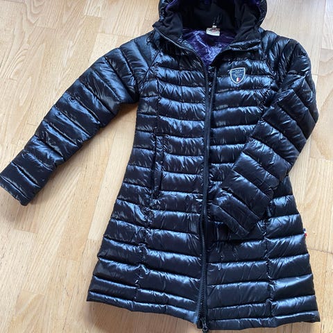 Super varm dunjakke så vidt brukt er dessverre blitt for liten. Avtagbar pelskrave.