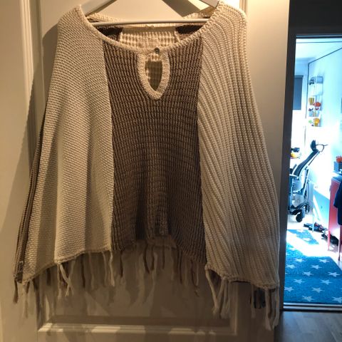 Zara Poncho flerfarget brun alpakkaull one size