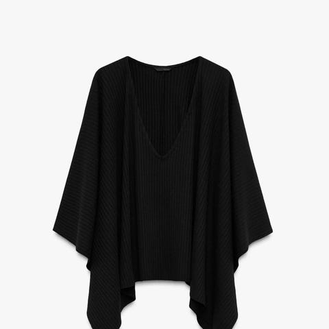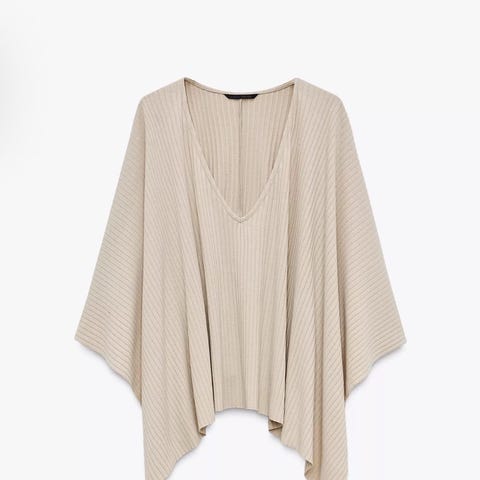 Zara poncho i brun farge, laget av akryl, ull og alpakkaull. Genseren har en one size passform og er designet for kvinner. Materialet gir varme og komfort, og genseren har en løs, oversized stil med frynser på sidene.