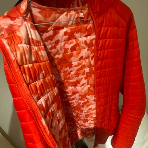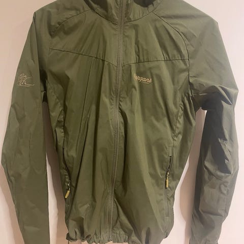 Pent brukt Bergans-jakke, vindjakke. Grå med oransje glidelås og detaljer.
