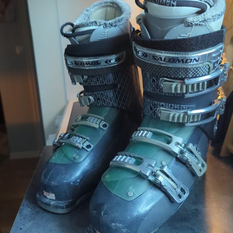 Svarte salomon slalomsko str 28-28.5 og blå/hvit Salomon slalomski 178cm. Utstyret er godt brukt. Selges samlet eller hver for seg. Må hentes på Saksvik.