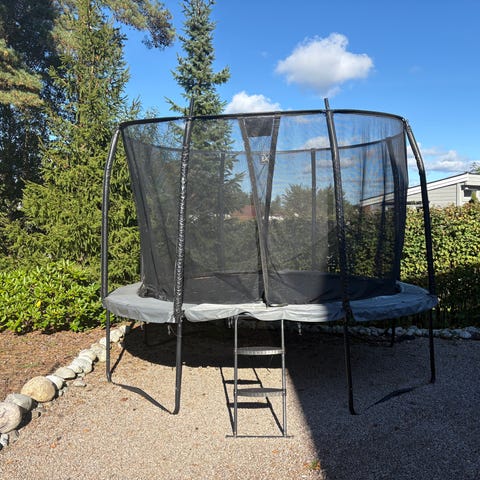 Hel og grei trampoline med sikkerhets nett. Ca 3 m I diameter. Gis bort grunnet flytting.