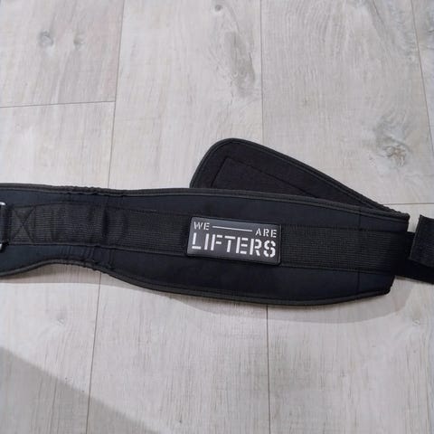 Onecon løftebelt i svart farge, designet for støtte under trening. Beltet har justerbare spenner for tilpasning. Str m opptil 93 cm. Det nederste på bildet er str s opptil 78cm. Kr 50 pr stk!! Målselv