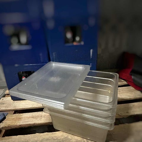 Plastbeholdere/kantiner 6 stk rektangulære gjennomsiktige
