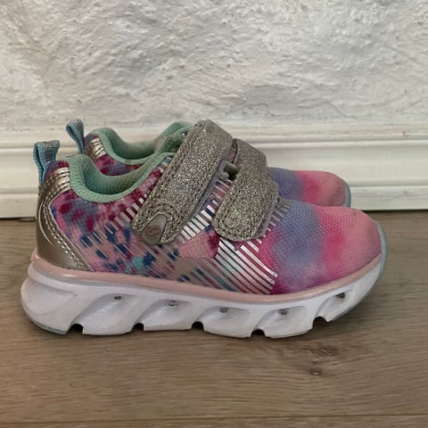 Tøffe blinkesko. De er brukt i under en sesong, men fått noen bruksmerker i stoffet på skoene. Ingen hull eller annet.