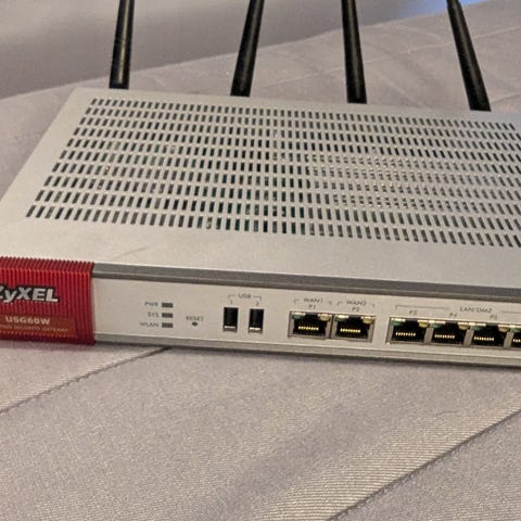 Telenor Zyxel NR7302 5G-antenne med tilkoblingskabler og veggfeste. Enheten er hvit og har modellnummer NR7302.