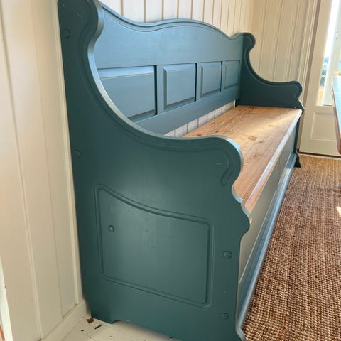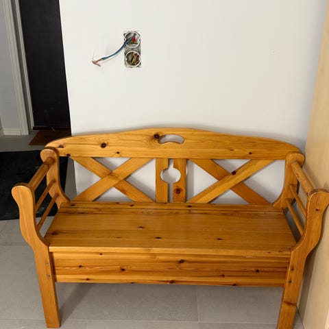Brukt som benk ved kjøkkenbordet og som gjesteseng for barn