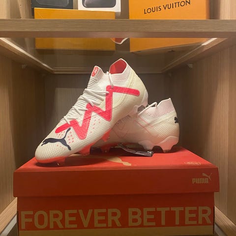 Puma Future fotballsko i størrelse 44,5. Brukt bare et par ganger da de er litt små. Selges billig for 900kr