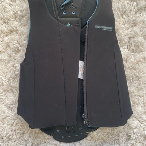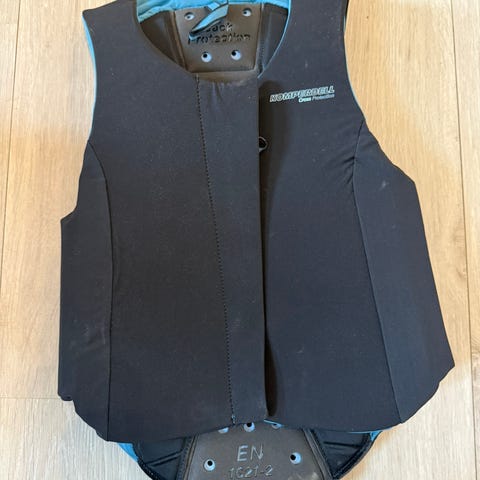 Pen og velholdt sikkerhetsvest str. 128. Her brukt fra 10 år til 12 år på slank jente. Byttet til str. 140 når hun ble 155 cm høy. Så de er ganske store i størrelsen. Se bilder for alder og høyde.