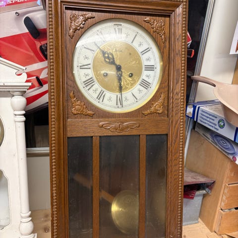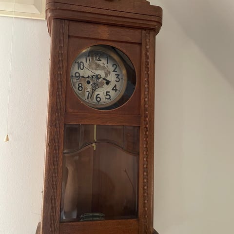 Gustav Becker Veggur. Pen antikk bestefarsklokke. Den fungerer helt fint, men den sakker lite grann, så den må muligens justeres på service. Jeg antar at den er 70-80 år gammel.
