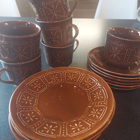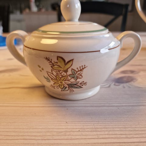 I god stand, 8 kopper, 12 fat og skåler, 2 sukkerskåler med lokk og 1 fløtemugge. Boksen får du med på kjøpet 💕 Hentes Helle etter vipps