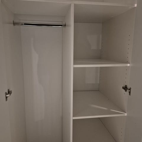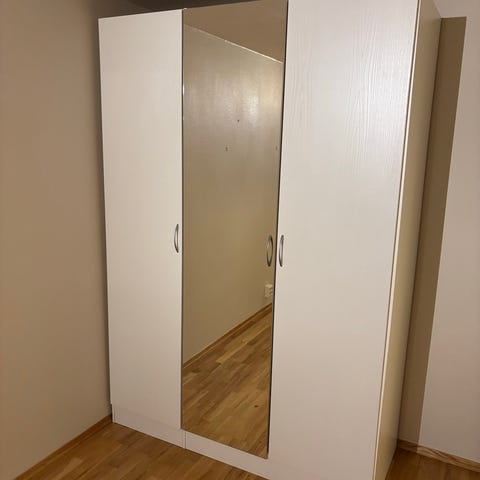Skapet står ferdig montert og er klart for henting. Passer godt til soverom, gjesterom eller bod.