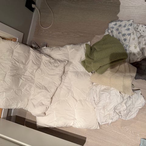 Det er noe misfarging som ikke går bort, vet ikke helt hva det er. Har prøvd å fjerne dette før jeg maskinvasket den. Se bilde. Den er ellers i topp stand.
