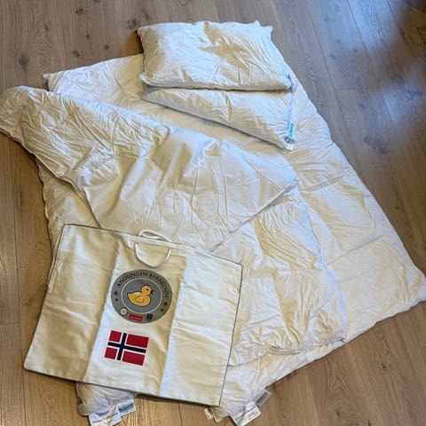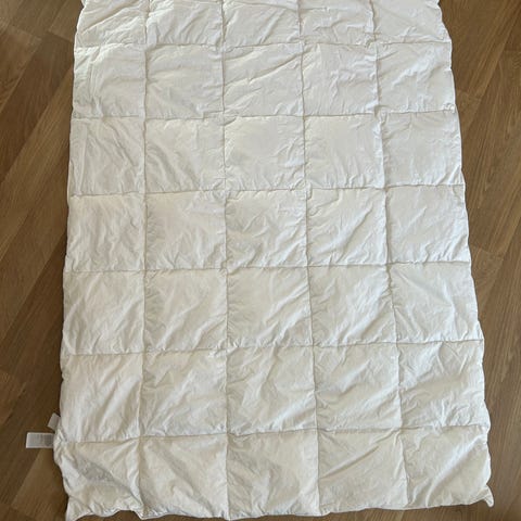 Den er nettopp vasket, og tørket i tørketrommel for at fjæren skal blåse seg opp igjen.
