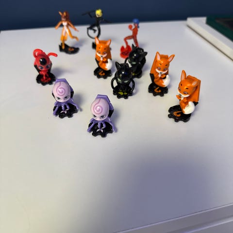 Dukker med motiv fra Harry Potter-serien, malt i farger som svart, hvit, oransje og brun.