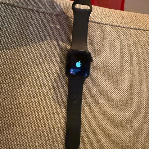 Apple Watch SE (1.gen) smartklokke med 44mm Space Grey aluminiumkasse. Klokken har bruksmerker, men det påvirker ikke bruken. Inkluderer flere armbånd i forskjellige materialer og farger. Modellenummer A2352, kjører watchOS versjon 10.6.1. Passer for brukere som ønsker en smartklokke med helse- og aktivitetsfunksjoner.