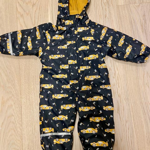 CeLaVi barnedress i regndress med fleece, blå farge, størrelse 80, designet for gutter. Dressen har hette og hel frontglidelås, egnet for barn i denne størrelsen.
