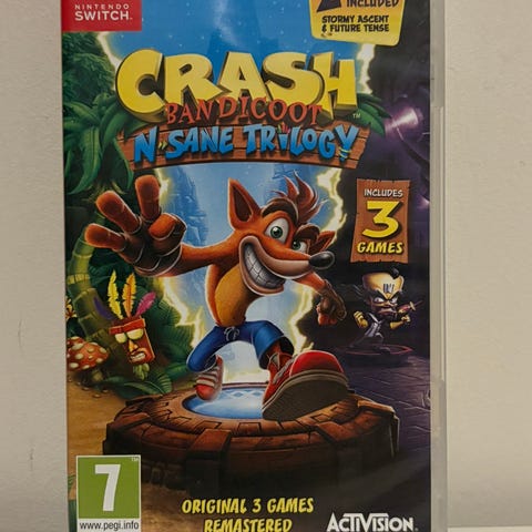 Crash Bandicoot N. Sane Trilogy Nintendo Switch-spill med tre originale spill fullstendig remastret. Inkluderer 1-2 spillere, 3 plattformer, og er egnet for aldersgruppen 7 år og oppover. Kr 250 ferdig prutet