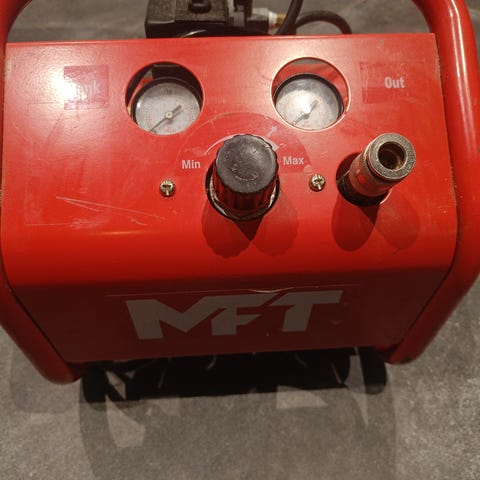 Ubrukt oljefri MFT kompressor 2,5hk 10bar m/slangetrommel selges da den ikke ble brukt til prosjektet den var tiltenkt.