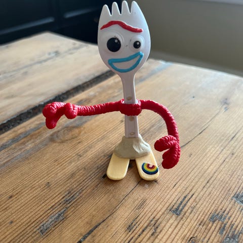 Har lokk med antenne og tre øyne, designet som en karakter fra Toy Story.