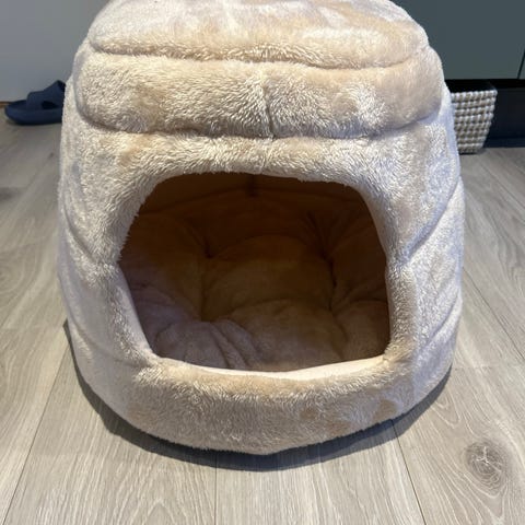 Little Bigger katteseng i brun og beige farge. Laget med mykt materiale som gir komfort for katten. Passer til små til mellomstore katter.