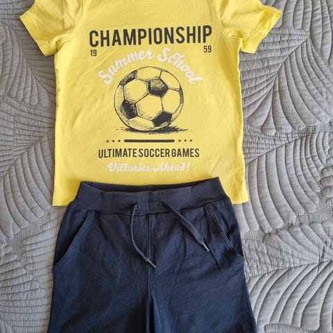 Overdel i str.116 og shorts i str. 122.