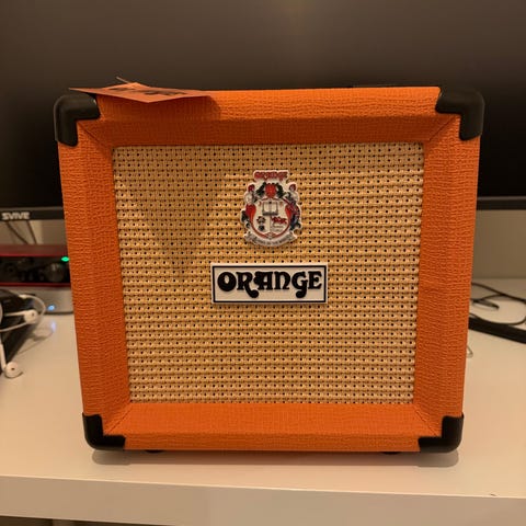 Kraftig liten amp. Lyspæra som viser om ampen er på er gåen, men ampen fungerer som den skal. Kan prøves med kabinett før kjøp. Følger med bæreveske.