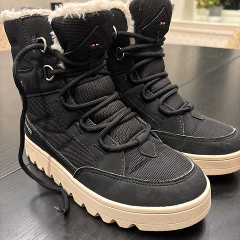 Viking gortex vinterstøvler for jente i størrelse 36. Støvlene er svarte med mykt grått "pusefôr". De har justerbar snøring øverst. Nesten ikke brukt (se bilder).