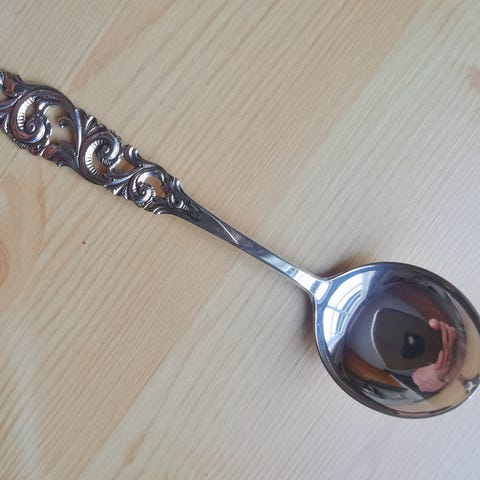 Skjeen er pusset og i god brukbar stand, men ikke like blank og fin som de øvrige jeg har lagt ut – dette er tatt hensyn til i prisen. Klassisk og tidløst design som passer fint til kaffe, te eller dessert.