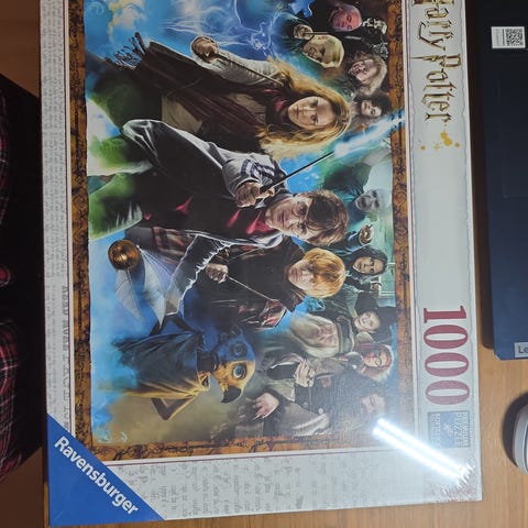 Ravensburger 1000 brikker puslespill med Harry Potter-tema. Lagt sammen en gang.