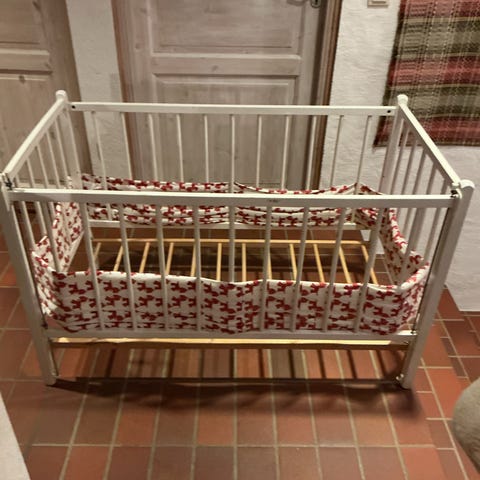 IKEA Sprinkelseng barneseng i hvit farge. Passer for små barn og har en enkel, funksjonell design.