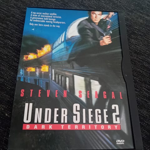 DVD-utgave av filmen Under Siege 2 Dark Territory med Steven Seagal. Actionfilm som foregår på et tog, hvor hovedpersonen må stoppe terrorister. Inneholder spennende scener og actionsekvenser.