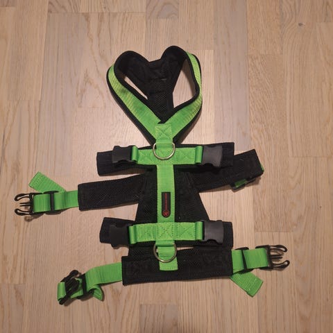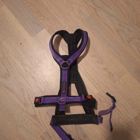 Sofa dog wear Y-sele. Kun brukt 1 gang, størrelse XS2/S1, se mål på siste bildet. 250kr, Nypris 530kr. Passer italiensk mynde eller whippet/mynde valp