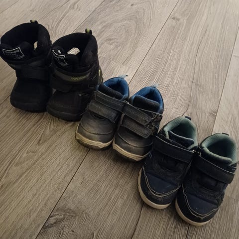 Viking Ultra str 30, cloggs fra Europris str 30. Brujt av to barn. Diverse ullsokker i blått og grått str 28-30. Gis bort samlet.