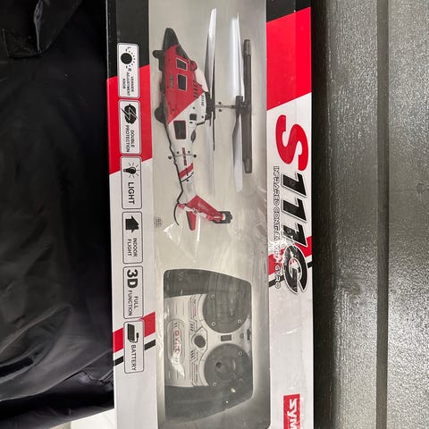 Godt bruk helikopter. Flyr fortsatt, men selges som delehelikopter. Understell limt og canopy er tapet. Binder kun til Spektrum DMS2.