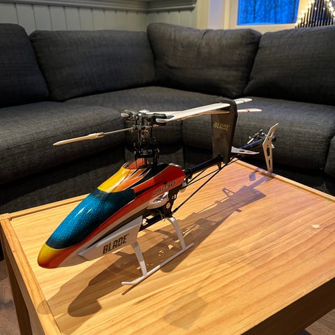 Blade 120 SR fjernstyrt helikopter i RTF (Ready To Fly) versjon. Leveres med fjernkontroll, batteri noen deler og manual