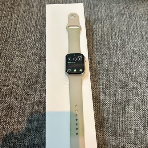 Apple Watch Series 7 41mm GPS med midnattfarget sportsreim. Klokken har en aluminiumsramme og GPS-funksjonalitet, egnet for daglig bruk og trening. Denne er godt brukt og selges som den er. Er noen bruks riper på glasset
