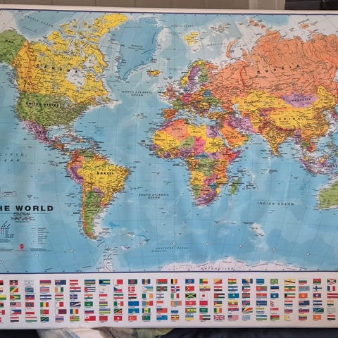 Stort dekorativt verdenskart på lerret selges hbo kr 700