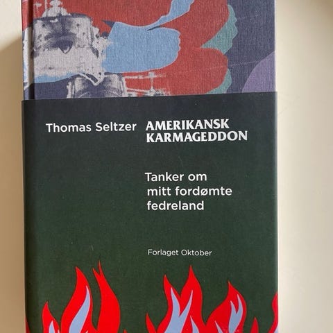 Thomas Seltzer Amerikansk Karmageddon bok med tittelen 'Tanker om mitt fordømte fedreland'. Utgitt av Forlaget Oktober. Boken omhandler temaer knyttet til Amerika og personlige refleksjoner.