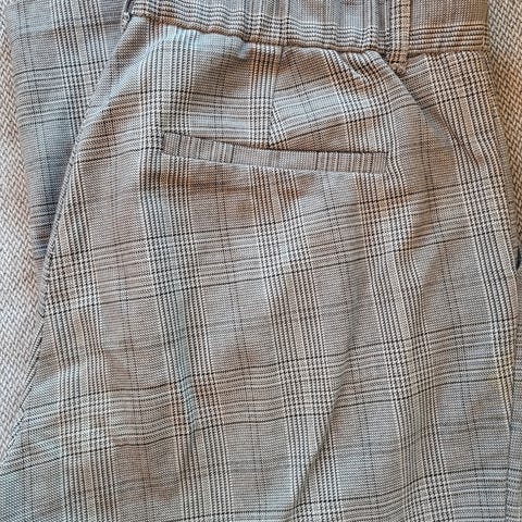 Rutet bukse med høyt liv og glidelås i siden. Litt stretch.