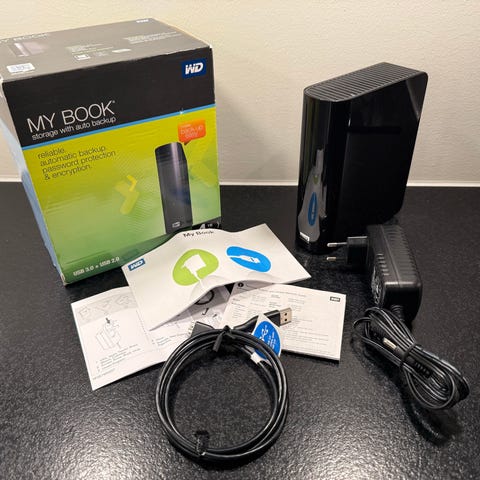 2x2TB WD MyPp. U. med kabler & overganger for Firewire 800 og Thunderbolt 2