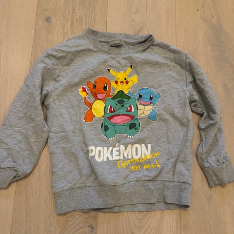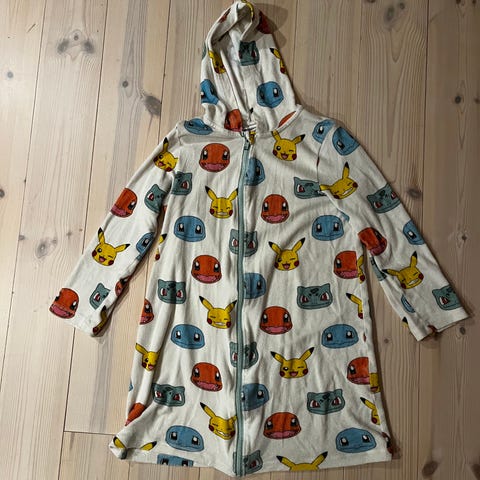 Reserved Pokemon collegejakke i størrelse 170 for unisex. Jakken er svart med hvite ermer og laget av bomull. Den har knappelukking og print både foran og bak med Pokemon-tema.