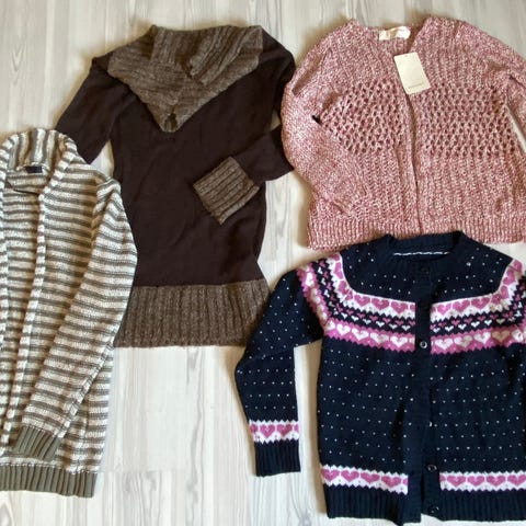 Selger 4 gensere. De to første er fra H&M, den tredje har jeg fått av noen men finnes ingen lapp på den noen sted, så vet ikke hvor den er fra. Siste fra Zara. Bruker vanligvis s/m, men disse kan passe flere strl.